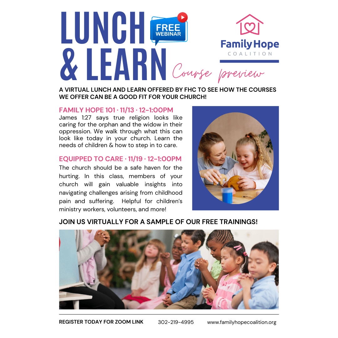 This virtual preview will introduce you to our Equipped to Care training-a class designed to help churches and caregivers navigate challenges connected to childhood trauma. Learn how trauma impacts brain development, explore practical tools for creating safe environments, and engage in discussion and role-play scenarios that can be applied at church, at home, or in the classroom. This training is especially helpful for teachers, children’s ministry workers, babysitters, grandparents, and friends of foster families.